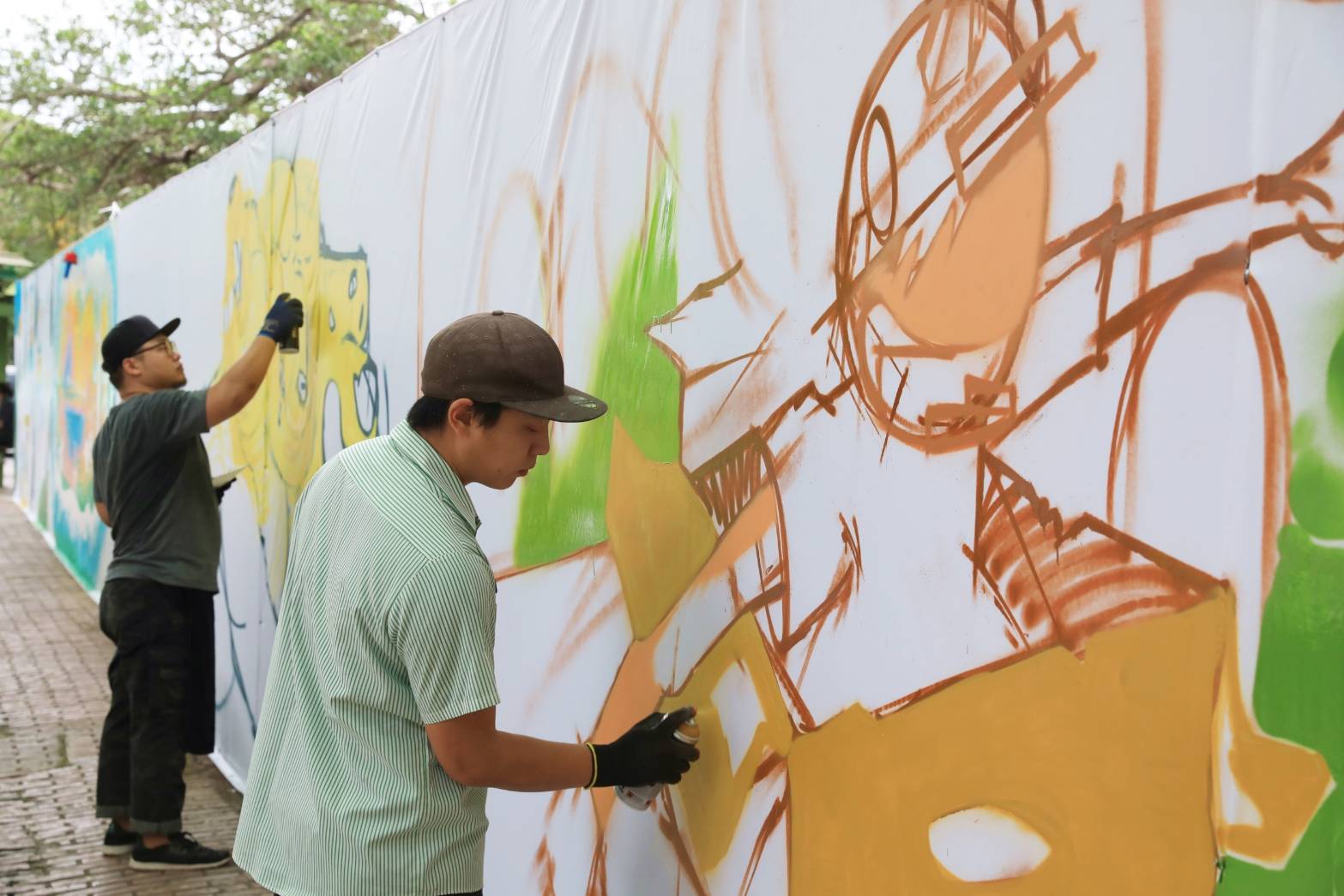 宜蘭市公所與宜蘭縣蘭陽創新發展協會及宜蘭縣政府共同合作,13日於丟丟噹森林廣場的工程圍籬前,舉辦青年藝術家的彩繪,希望能激發青年城市美學及推廣台灣故事館。