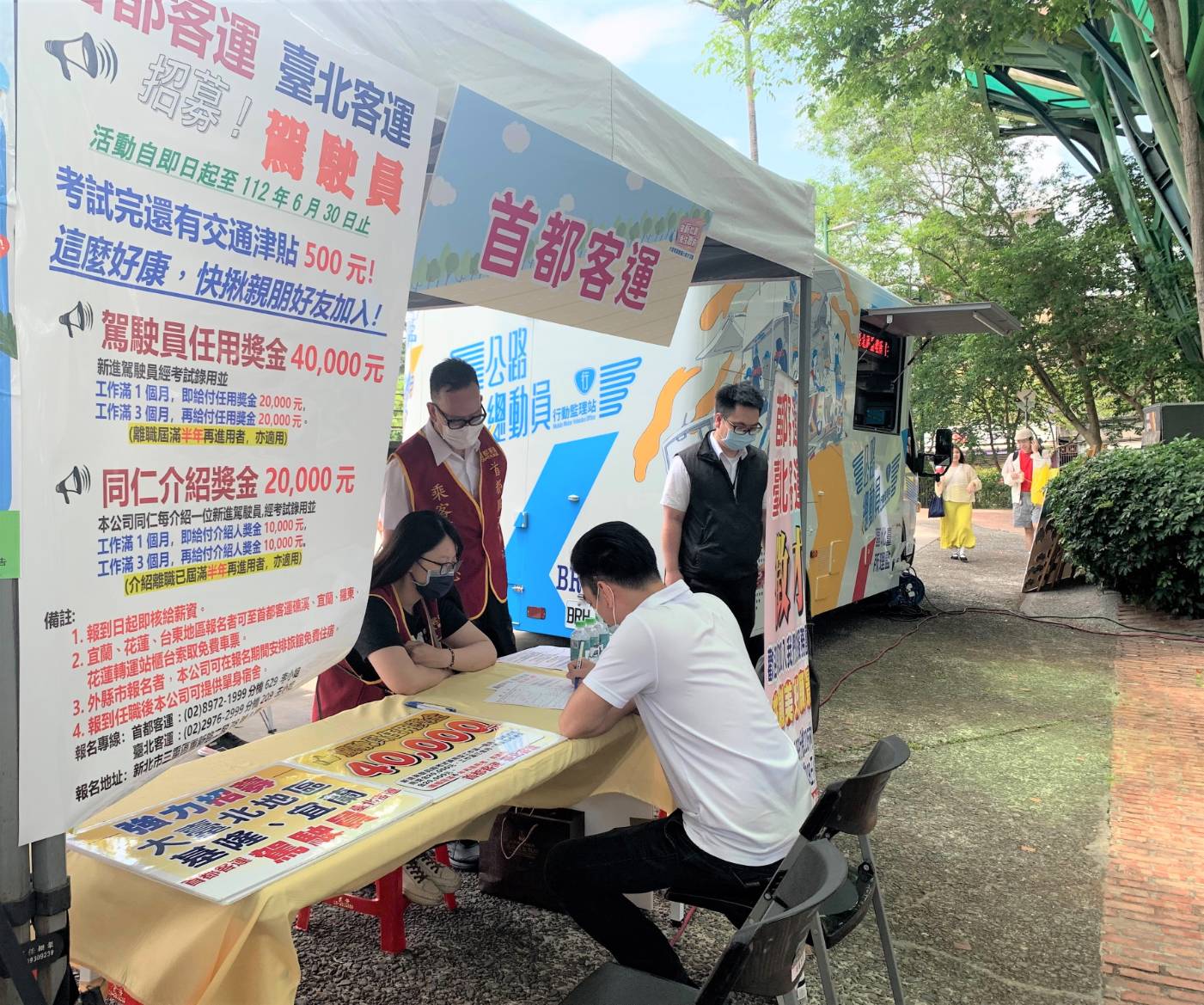 【記者譚杰、趙奇濤/宜蘭報導】大客車駕駛擴大徵才活動今(6)日上午在宜蘭火車站前丟丟噹森林廣場熱鬧登場,參加徵才招募活動設攤的業者有首都客運、國光客運、統聯客運、統聯運通、葛瑪蘭客運、葛瑪蘭通運及宜蘭縣遊覽車客運商業同業公會等,現場提供一站式服務,民眾除可直接與各家業者洽詢了解工作性質、薪資福利等,也有公路人員訓練所及駕訓班等駐點人員提供相關訓練課程的諮詢服務;活動至下午3點結束前,吸引許多民眾前來參加,計有87人次填寫求職表,初步成功媒合42位民眾。