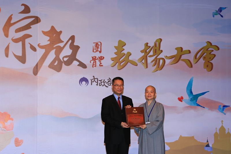 在「宗教公益獎」部份,有一百多個單位受獎單位,包括天主教、基督教、道教、佛教……等宗教團體,而佛教慈濟功德會由來自花蓮靜思精舍的德悅法師代表領獎。