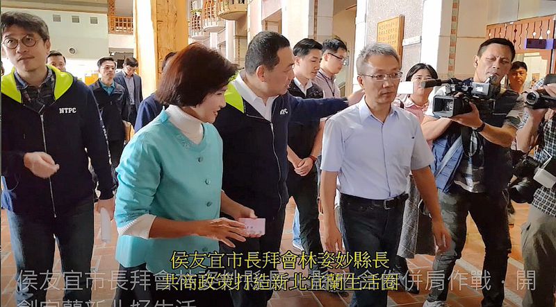 新北市長侯友宜今(28)日 下午到宜蘭拜會縣長林姿妙,雙方團隊就觀光、農業蔬果以及交通警政等多項議題,進行研討意見交換,並肩作戰打造共同生活圈,拼出宜蘭新北好生活。