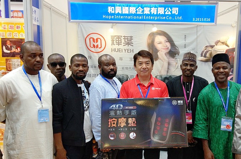 照片:代理輝業按摩器具的和興公司何昀璋經理與奈及利亞的買主合影