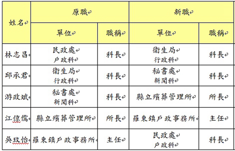 ★羅東鎮戶政事務所主任吳玟怡 調 民政處戶政科科長