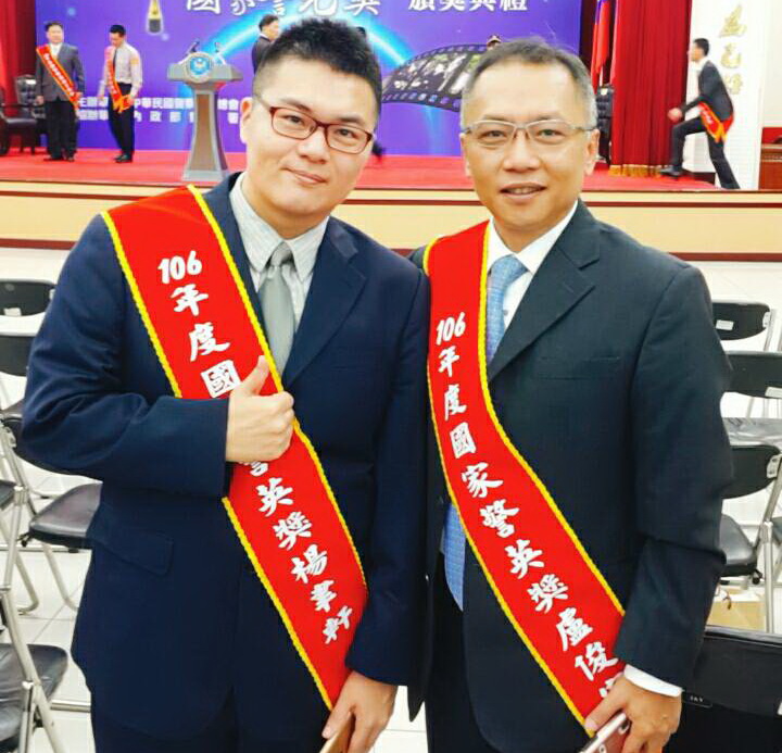 宜蘭縣警局刑警大隊大隊長盧俊宏(右) 獲頒106年國家警光獎。(照片/警局提供)