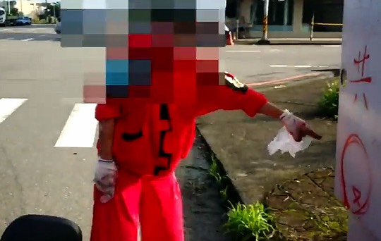 紅衣老女孩專挑電線桿交通設施噴紅漆