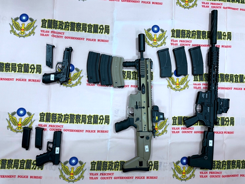 經宜蘭分局擴大調閱監視器,發現另有一名男子(25歲)手持一把疑似生存遊戲長槍當街揮舞助勢,經友人從旁勸阻後離去,警方於今(9)日15時30分持搜索票至林姓犯嫌住居所執行搜索,現場查緝林嫌到案並查扣空氣長槍2把、空氣短槍2把,經測試後無殺傷力。