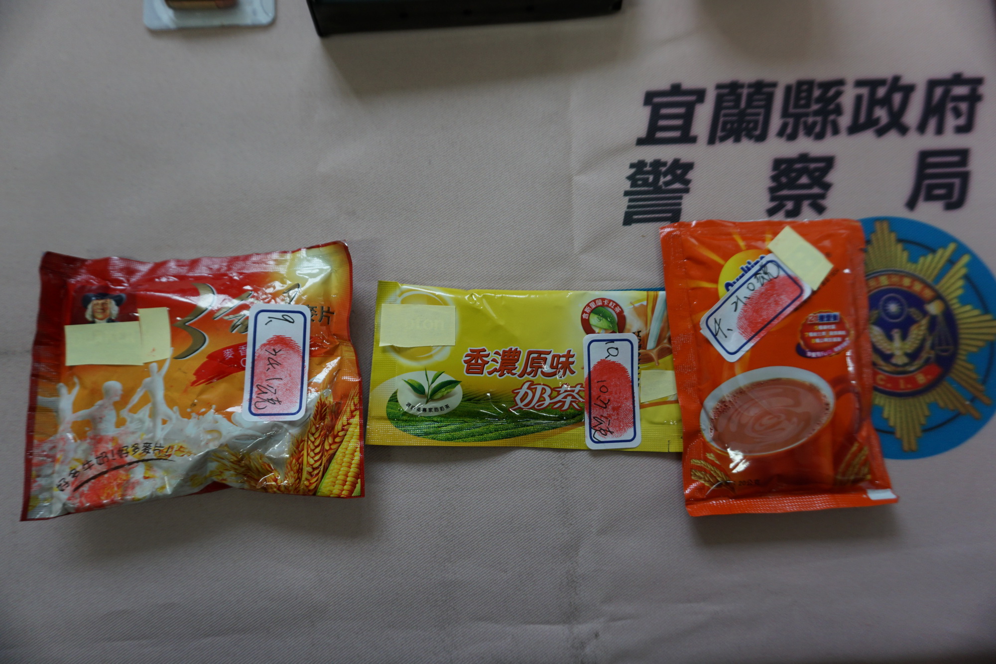 黃嫌所持有的麥片、咖啡、奶茶包偽裝的新興毒品。(照片/警方提供)