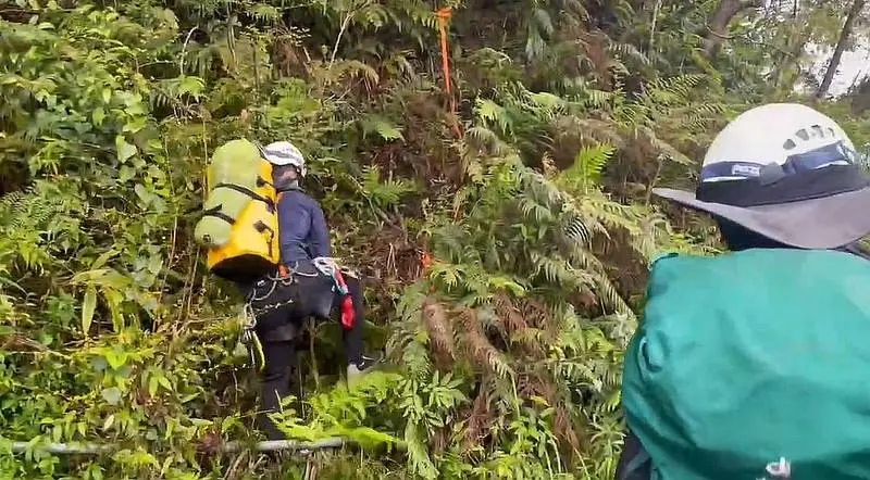 消防局接獲通報後立即派遣第四大隊、觀音分隊救援人車與無人機前往現場,同時與報案人持續聯繫掌握狀況。由於事故地點山徑險峻,單程步行需約8至10小時,搜救人員必須攜帶山域及溯溪裝備才能前往。