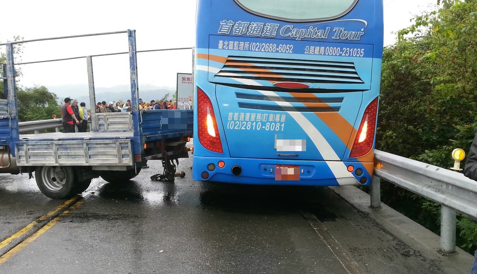 首都賞櫻專車逆向超車撞上小貨車。(照片/宜蘭分局提供)