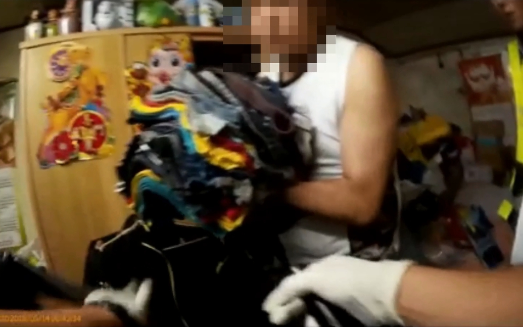 員警在張嫌住家衣櫃取出大批內褲。(照片/宜蘭警分局提供)