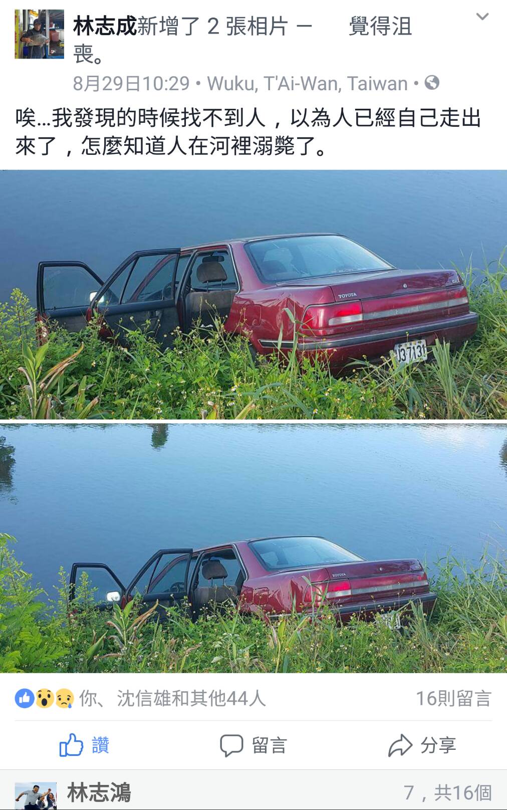 圖為林志成理事長於案發後於其臉書po文表示於第一時間未發現吳姓車主而感到沮喪難過。