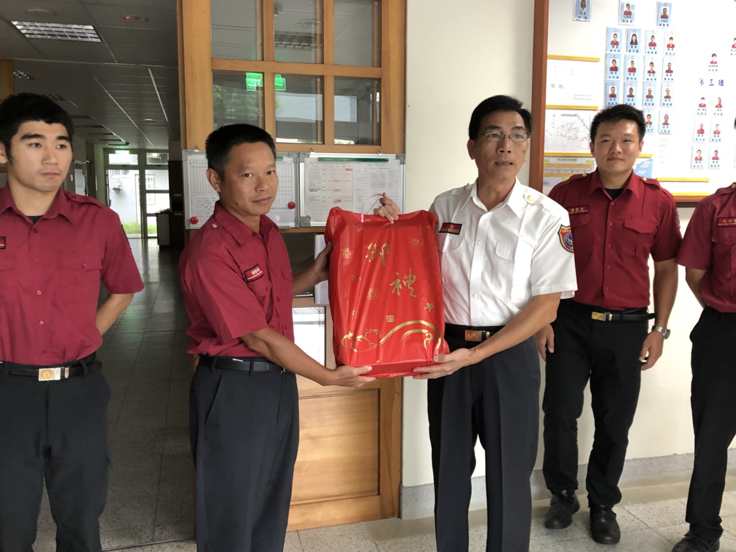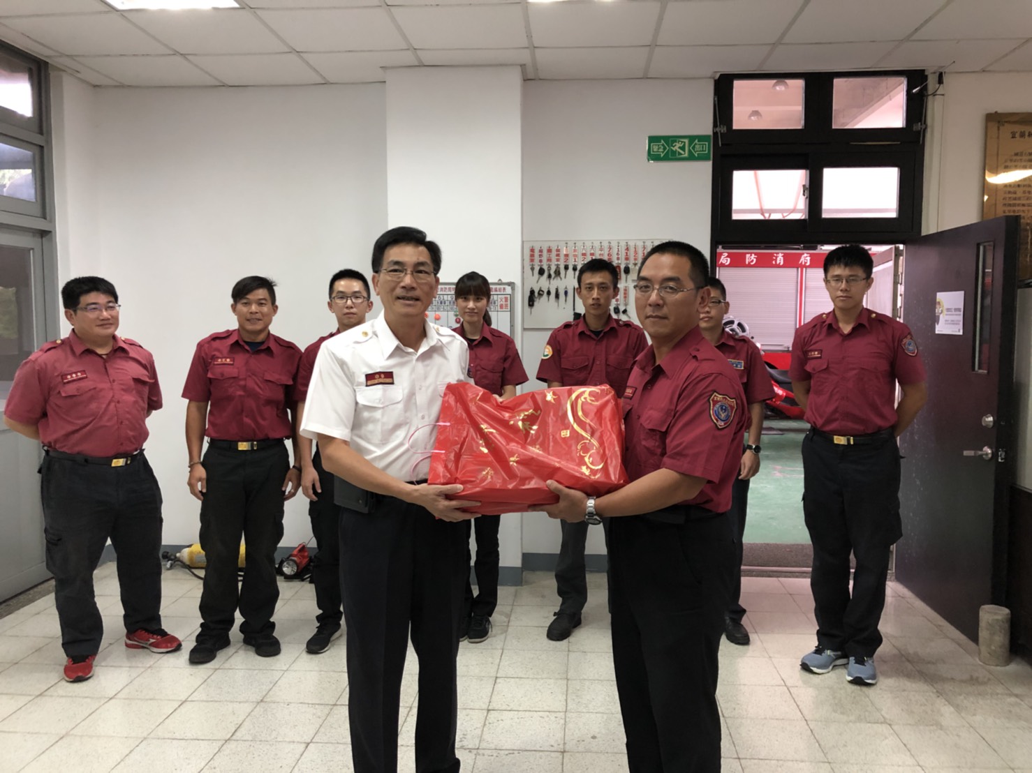 徐松奕局長攜帶禮盒慰問消防局頭城分隊。(照片/宜蘭縣消防局提供)