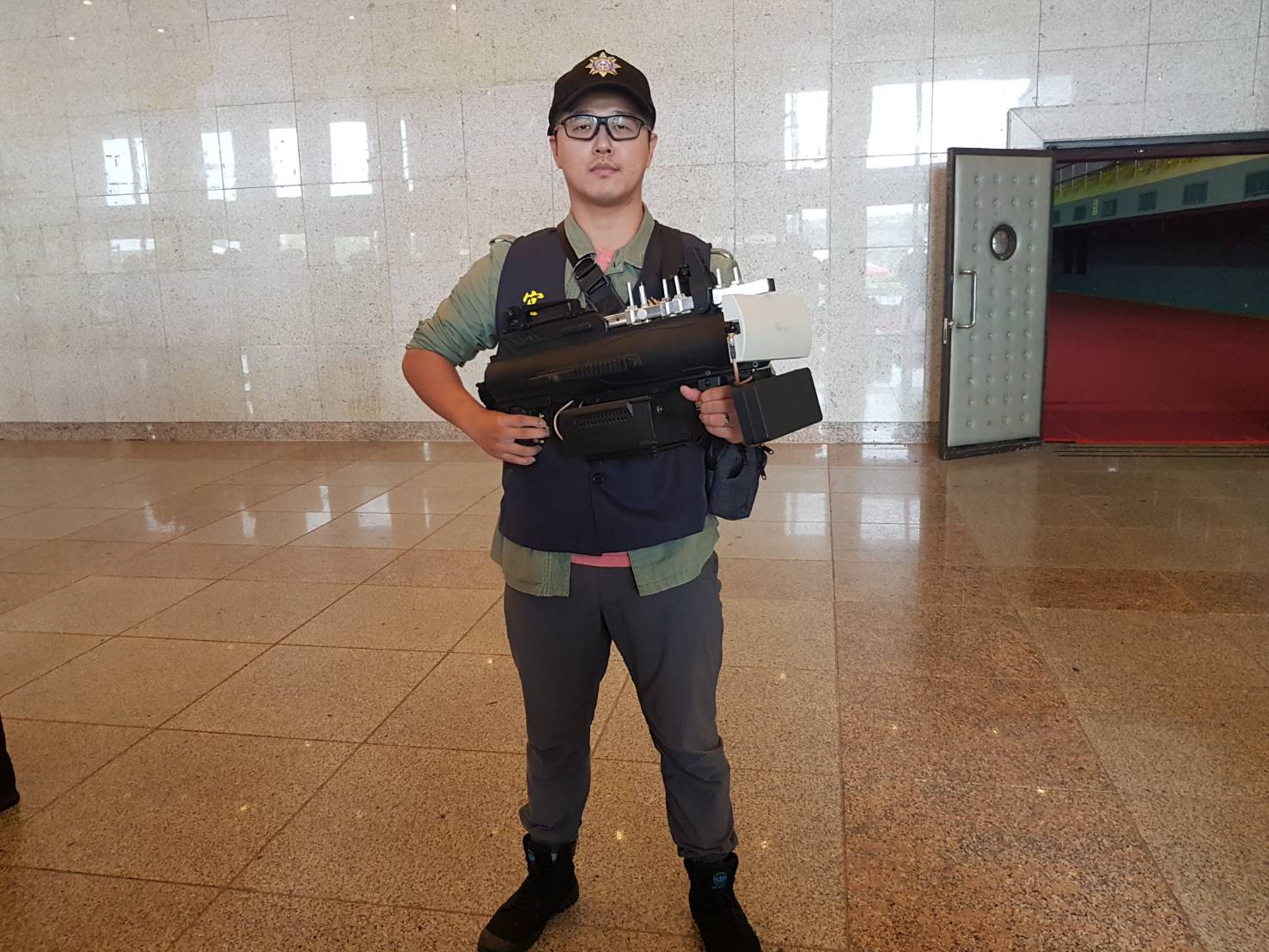 宜蘭縣警察局特地向台北市刑警大隊科技偵查隊商借2套無人機攔截槍(無人機干擾器)設備。(記者邱淑珍/攝影)