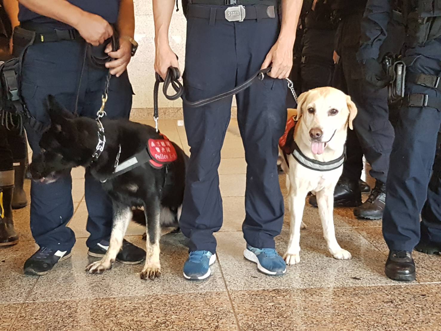 國慶晚會特地請來保安警察第三總隊偵爆犬來支援,讓安檢多一道把關。(記者邱淑珍/攝影)