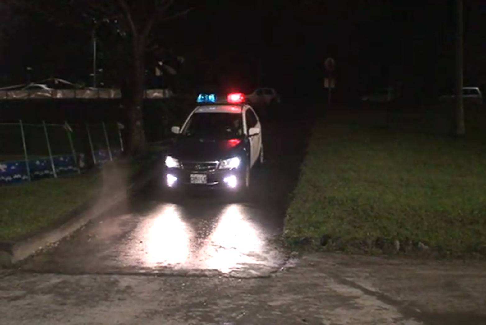 員警開巡邏車到河濱公園加強夜間巡邏。