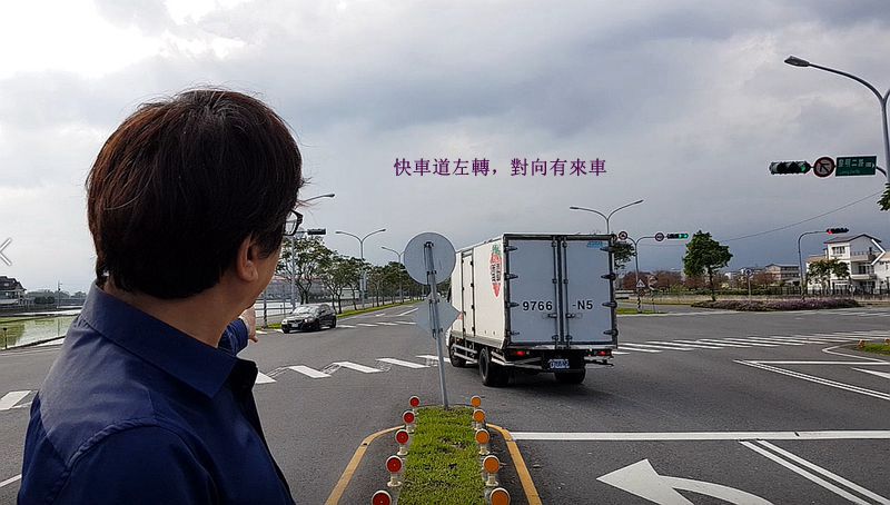 李偉華表示,快車道上是三個燈的號誌,真的是非常不安全,因為綠燈時左轉的車輛要閃對向兩線快車道的直行車,尤其慢車道上的直行車根本想不到對向的車輛會彎過來,極易發生危險。