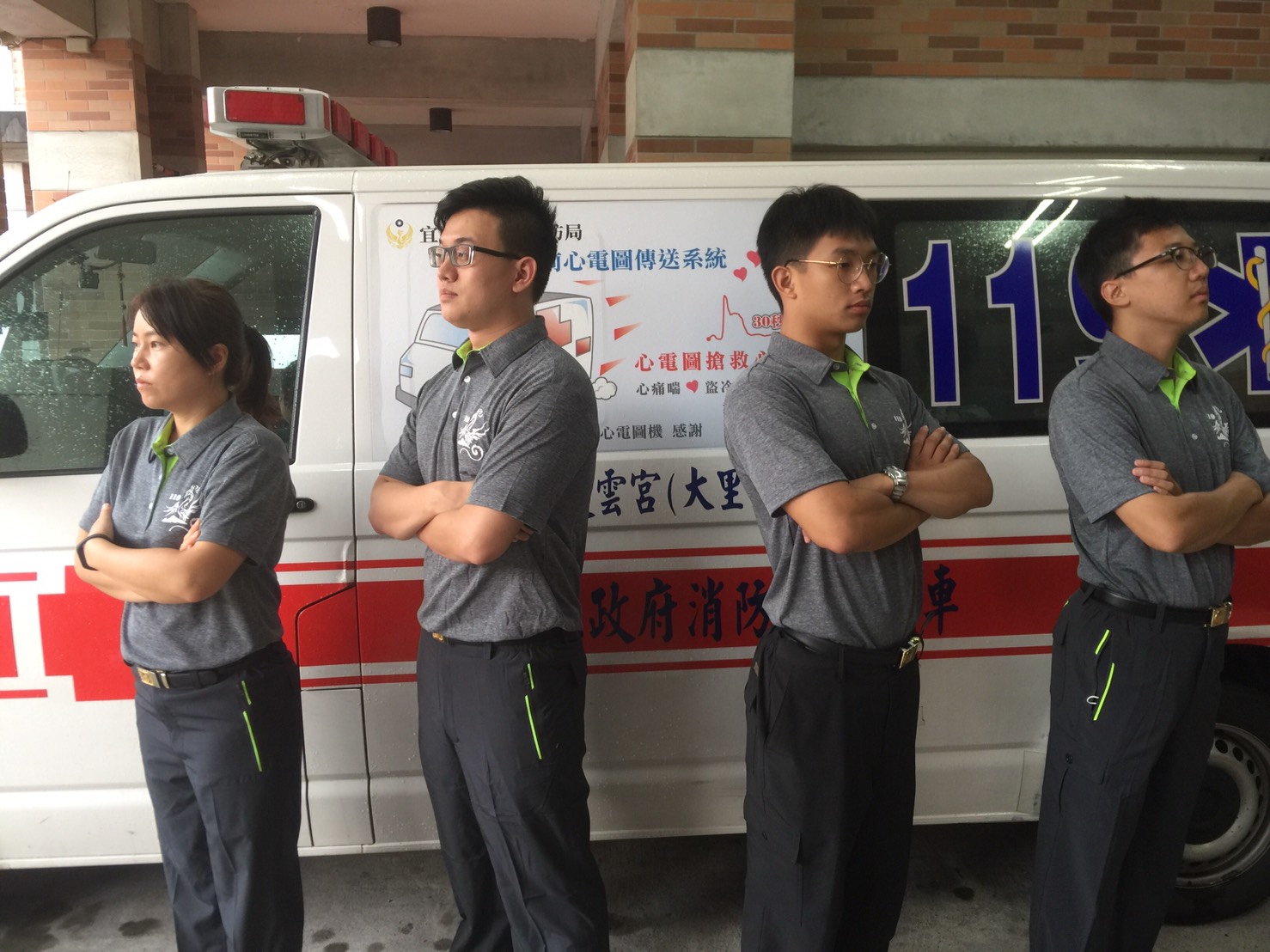 救護出勤同仁宜蘭消防分隊隊員簡煜勳表示:紅色工作服較不透氣,且通常著工作服內會再穿內衣,再加救護背心共3件,非常悶熱,換穿救護POLO衫較為透氣舒適,活動上也比較方便。