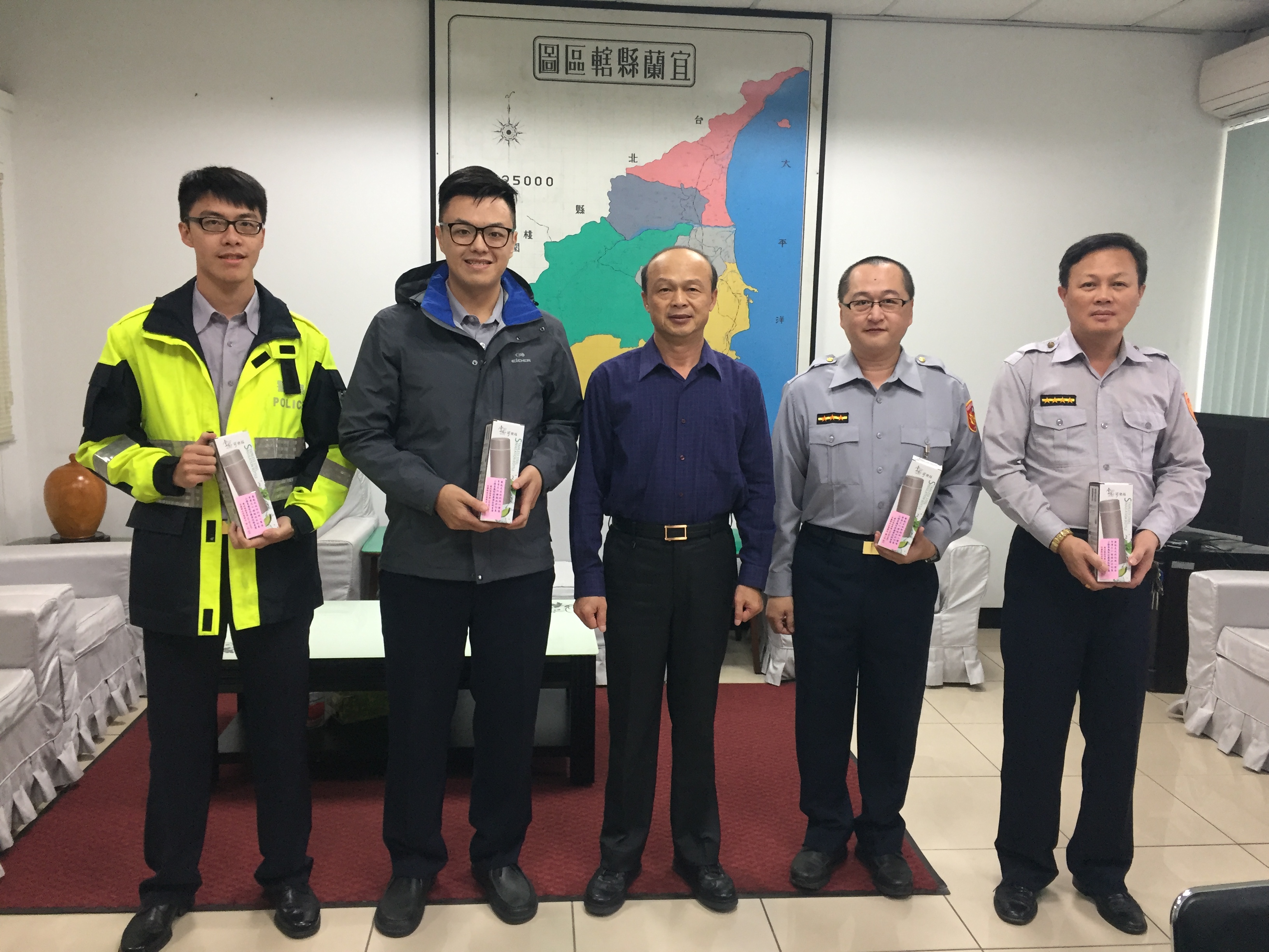 宜蘭縣警局副局長葉步和(右2)親自頒發獎品給得獎者。(照片/宜蘭縣警察局提供)