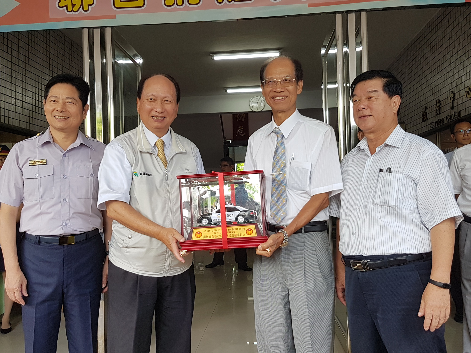 企業家捐贈警用車(左起)宜蘭警察局長詹永茂、宜蘭縣代理縣長吳澤成、捐贈企業家、副議長林棋山。(資料照/記者邱淑珍攝)