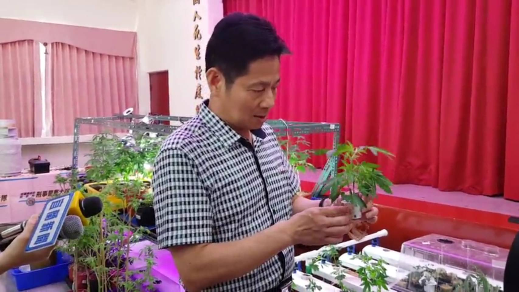 詹永茂局長觀看大麻。(資料照/記者邱淑珍攝)
