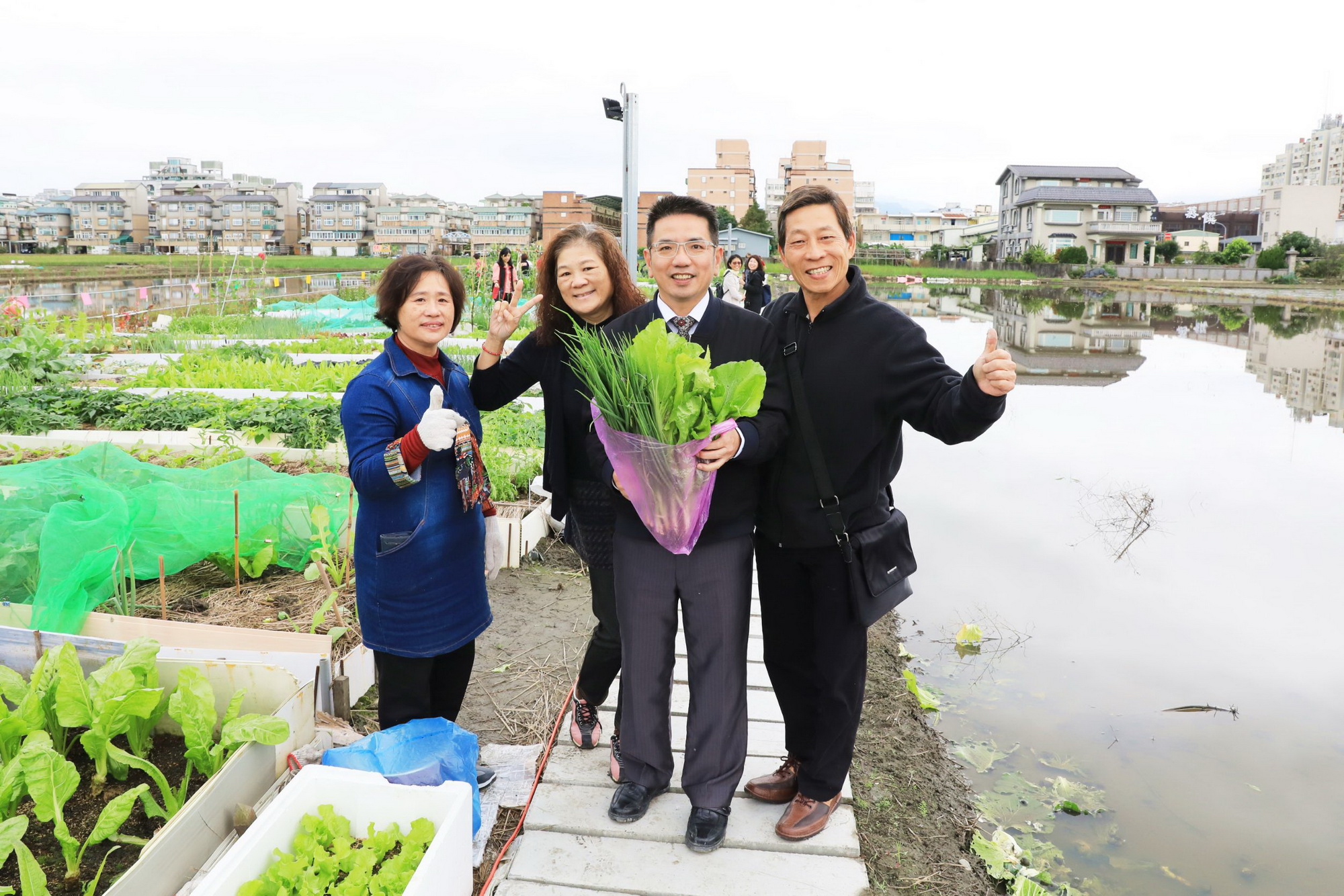 宜蘭市長江聰淵表示,在市公所的努力之下,宜蘭市目前有4座市民農園及1座智慧農園,提供民眾於假日休閒時,種植蔬菜體驗農村生活的樂趣,非常高興看到延平社區發展協會在縣府及公所的輔導之下,能夠運用社區資源,設置友善農場,提供社區民眾樂活耕作的場所,希望藉由延平社區友善農場的成立,使得其他社區都能運用自己的資源,創造社區營造的活力,共同將宜蘭市建構成樂活宜居的城市。