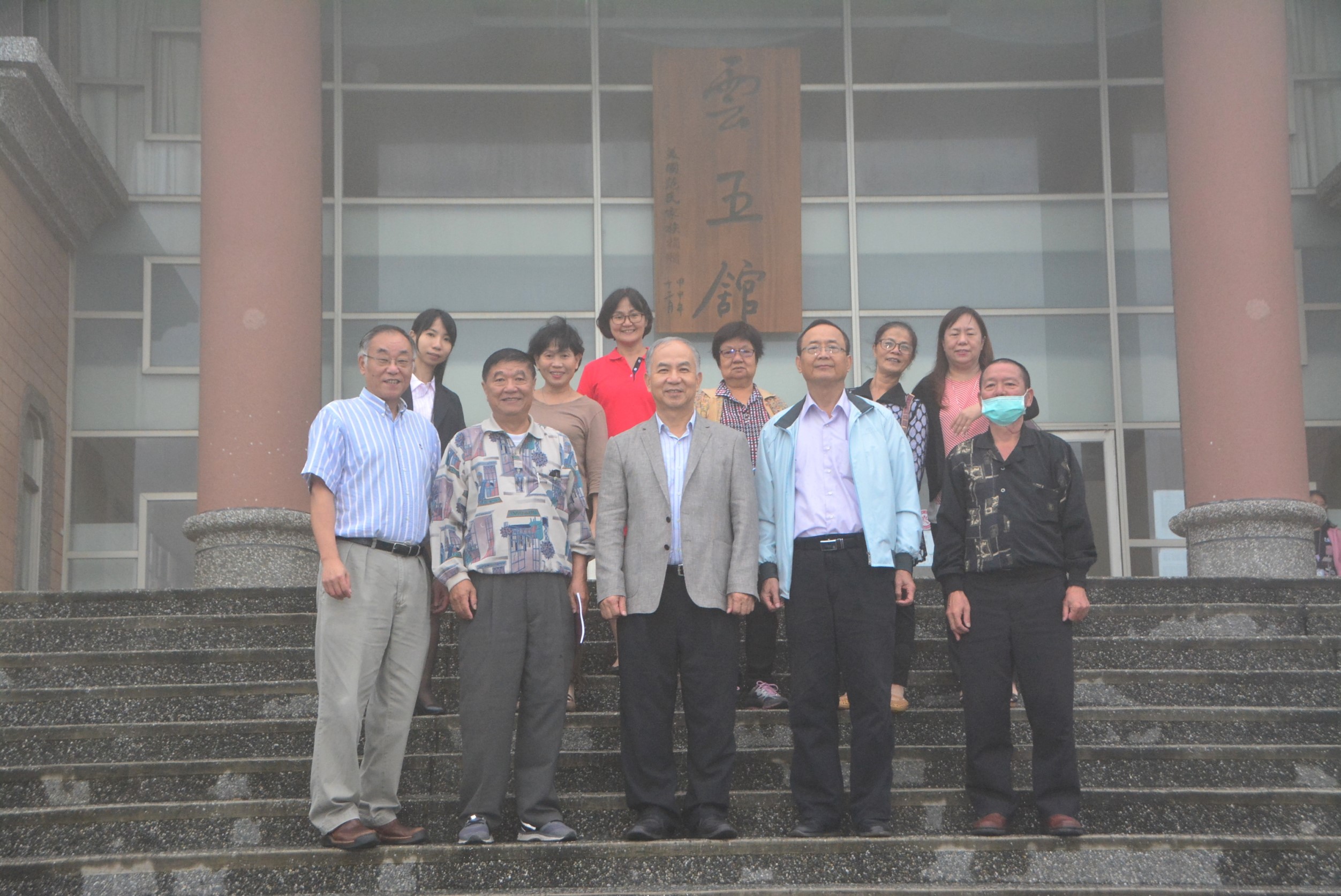 吳沙文化基金會董事長吳定國等一行人在雲五館前留影。〈照片佛光大學提供〉