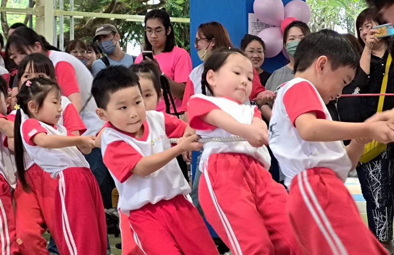 壓軸登場的大班拔河比賽成為全場焦點,各隊全力以赴、奮力應戰,加油聲與歡呼聲此起彼落,過程緊張刺激,不僅展現團隊合作精神,也將活動氣氛推向最高潮。