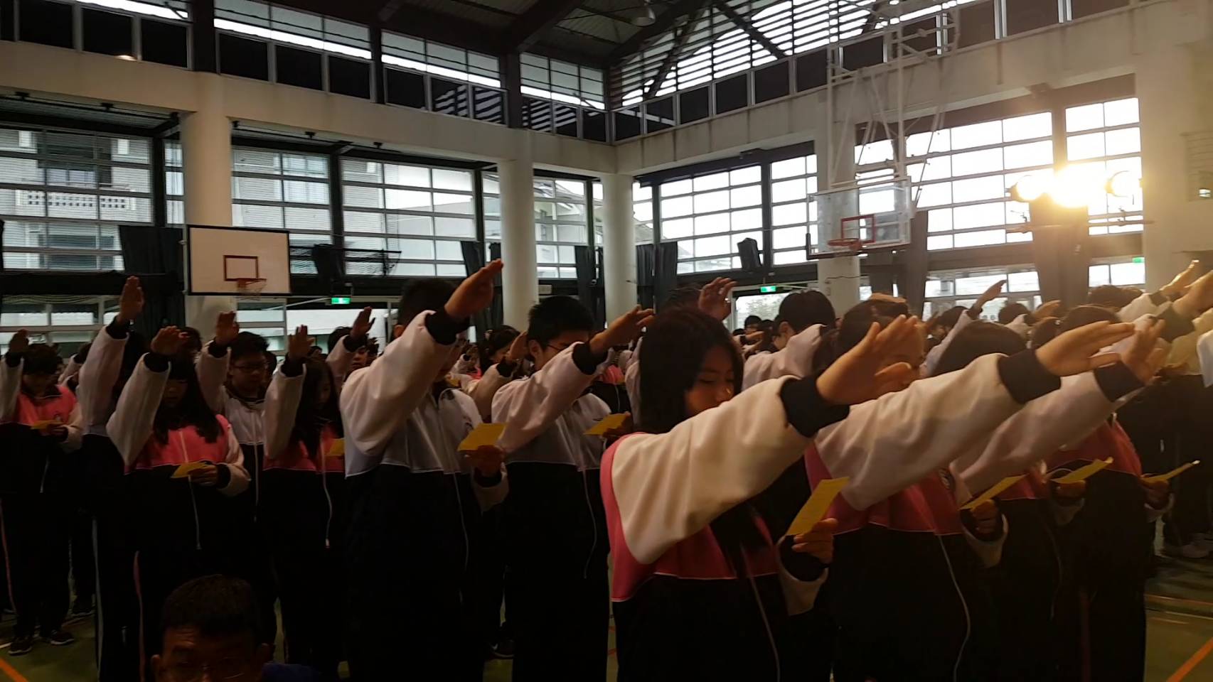 凱旋國中全體師生舉手宣誓反黑、反毒、反霸凌。(記者邱淑珍/攝影)