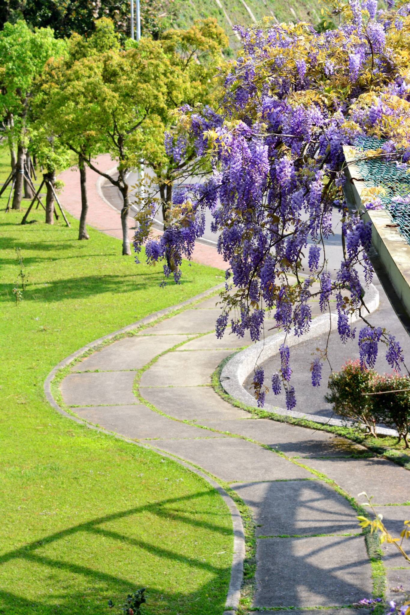 一串串的紫藤花同時盛開,場面相當唯美夢幻