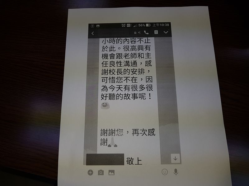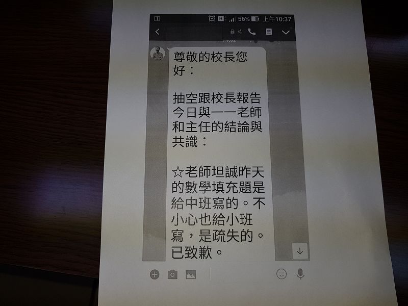 有關家長指控學校人員態度惡劣,代理校長陳建安接獲家長反應,立刻與該班確認班級教學狀況,並由幼兒園主任及該班導師與家長進行溝通,溝通後該家長以電話傳訊息給代理校長表示相談甚歡,還有很多故事要與校長分享,惟過幾天,又至園中反應教授注音問題,代理校長建議其與老師進行雙向溝通,日後並多次詢問幼兒園主任該家長是否又有到校反應注音教學問題,得到的訊息是家長無再反應,因此校方絕無態度惡劣或不處理的情形。