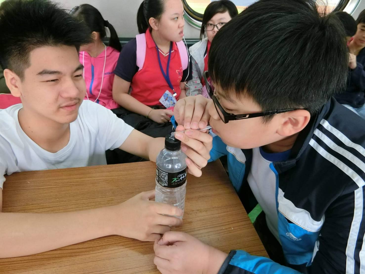 學生利用吸管及寶特瓶體驗伯努力原理,輕鬆噴出水霧。(照片/黎明國小提供)