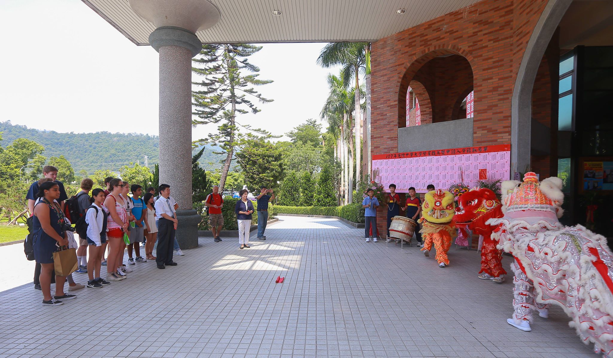 今(29)日一大早Sage Hill School師生約二十人風塵僕僕抵達慧燈中學,董事長吳君瑩及校長吳松溪還親自率領全校師生接待,在醒獅社的鑼鼓喧天表演下,迎接這遠道而來的貴賓。