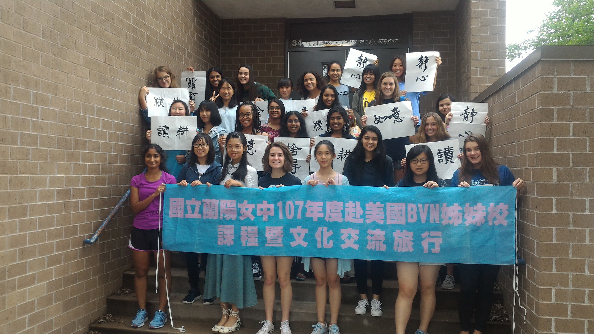 去年5月蘭陽女中在旅美校友楊美麗、夫婿楊理典伉儷及宜蘭市長江聰淵、宜蘭市美國姊妹市黎霧市長佩吉‧鄧恩的協助下與美國堪薩斯州BVN高中(Blue Valley North High School)締結姊妹校。隨即於八月底由10位師生赴美進行第一次課程暨文化交流活動。今年經由英語口語面試、個人才藝等嚴格甄選,由10位同學脫穎而出,並在林靜怡老師帶領下代表學校赴美參加17天的交流活動。