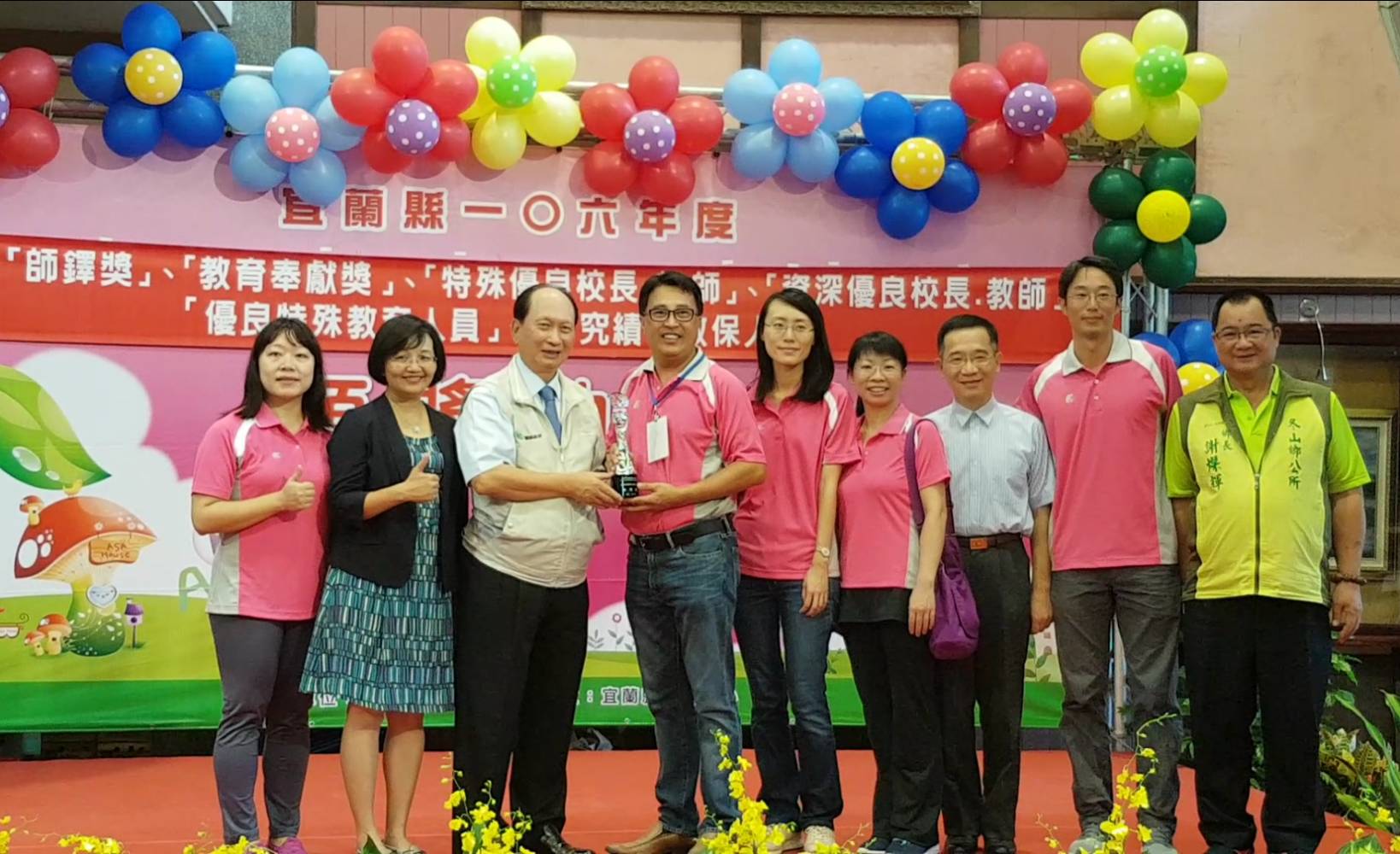 宜蘭縣政府每年都會舉辦表揚大會,這次受表揚的項目有師鐸獎、教育奉獻獎、校長領導卓越獎、教學卓越團隊獎、特殊優良校長暨教師、資深優良校長暨教師、優良特殊教育人員、研究績優教保人員」等,每個獲獎者都是由代理縣長吳澤成親手致贈,對受獎者而言,是勉勵也是肯定。