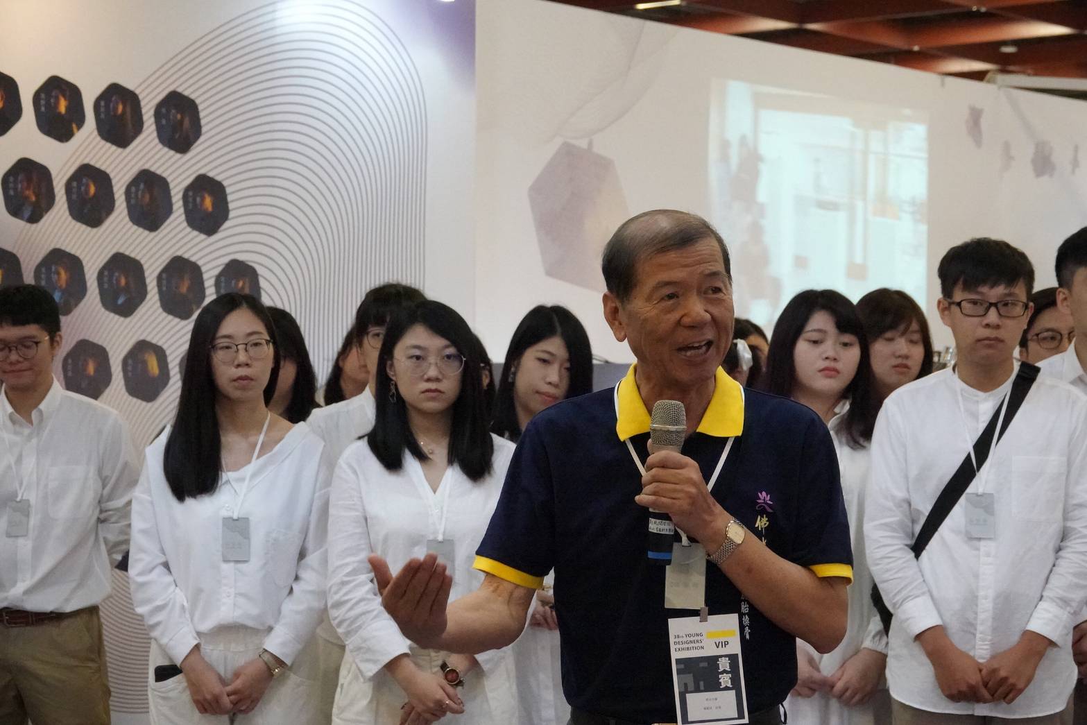 此次畢展的總召趙文波,來自泰國的他,起初來台灣就讀佛光山叢林學院,後來轉至佛大產媒系就讀。為了本次活動能夠展現佛光大學的特色,他寫信與佛光山星雲大師報告此展覽,大師特別致贈一筆字,勉勵所有產媒系的學生「巧智慧心」。