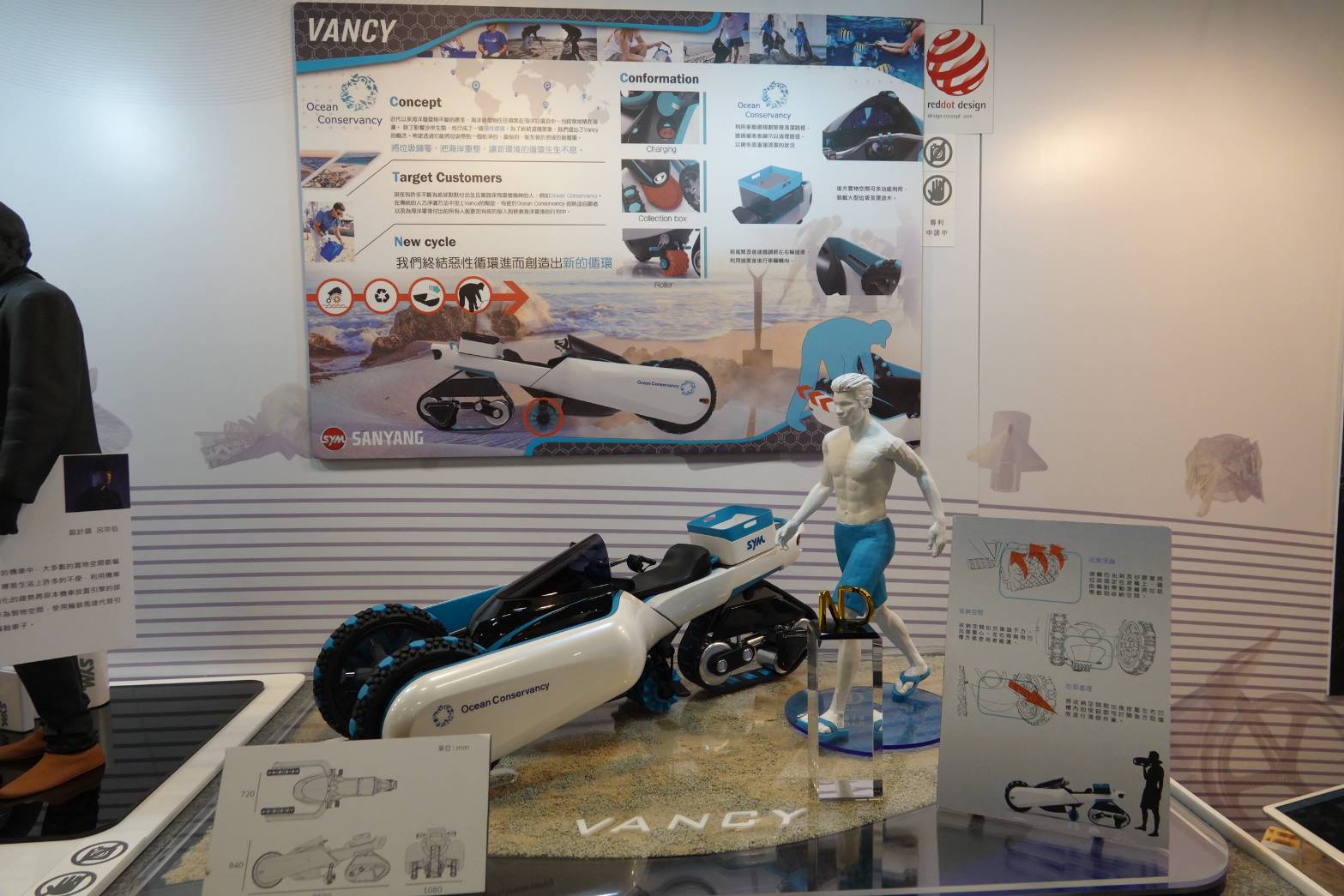 而在此次畢業展覽中,大三生李世晨與鄭韶揅的設計 「FGW」,以及張軒銘與蔡逸仙的淨灘車「FANCY」特別被展出。為響應社會潮流,「FGW」將電動車結合運動潮流的飛輪系統,讓交通工具變成運動器材,此創作更獲得光陽機車設計挑戰盃的銀獎。而擁有可愛蝦子外觀的「FANCY」淨灘車,更獲得2019ND巨星設計獎金獎得肯定,要讓淨灘這件事變得簡單,讓世上的海灘都能恢復原始的自然生態。