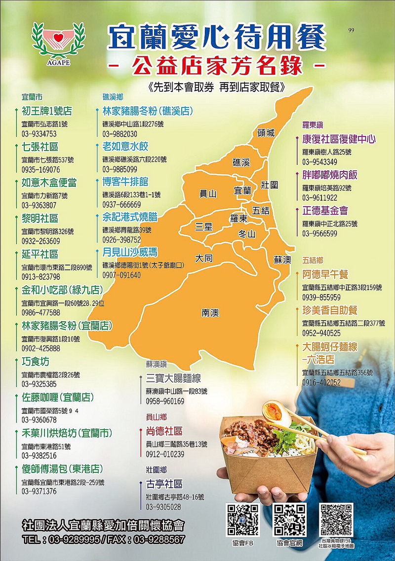 無償援助公益餐食的宜蘭愛心店家,芳名如下~