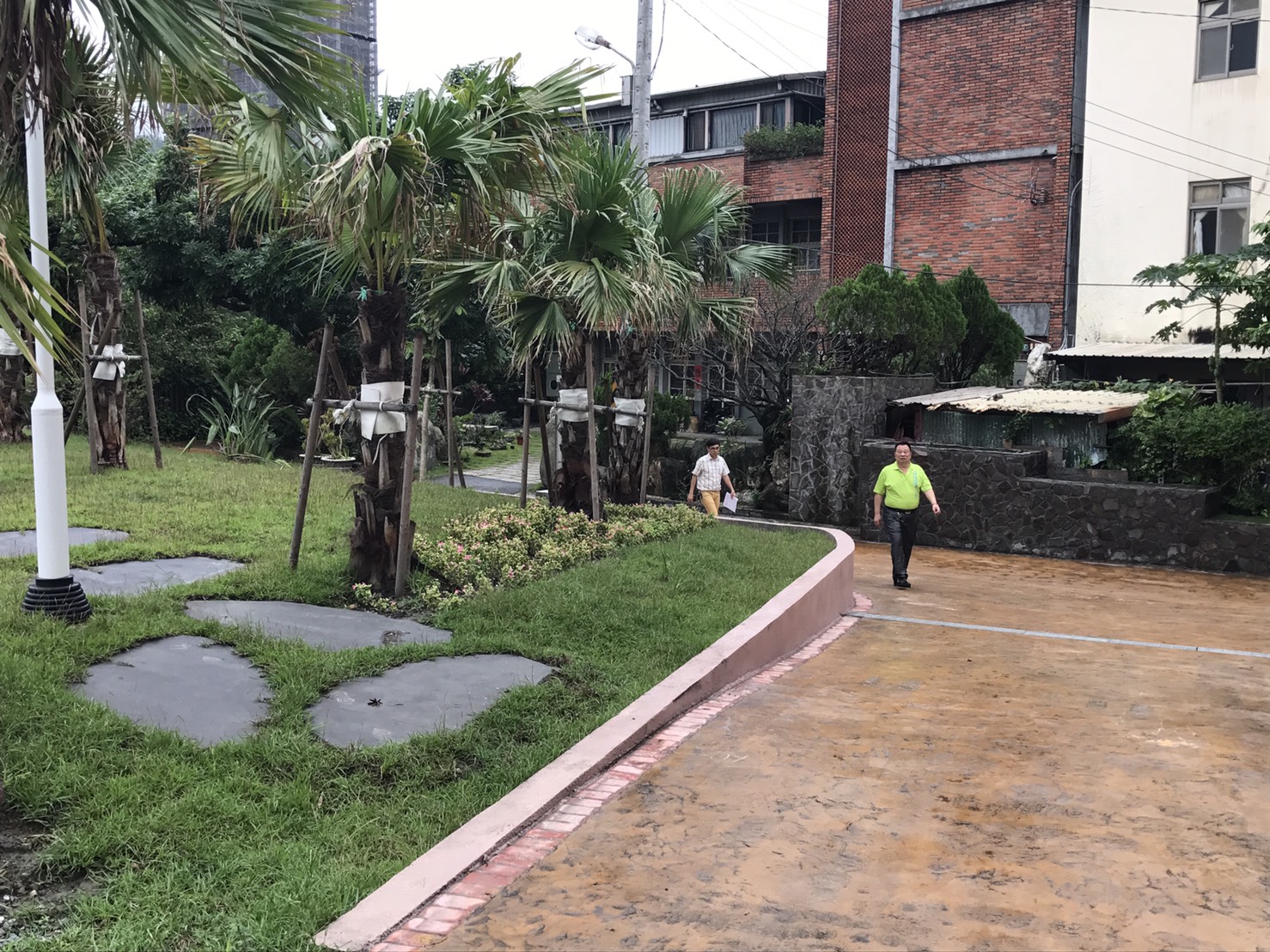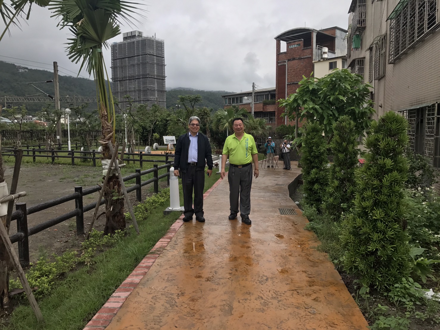 日式庭園造景風格,讓頭城鎮長及陳秘書走起路來都---樂在其中〈記者王名煒攝〉