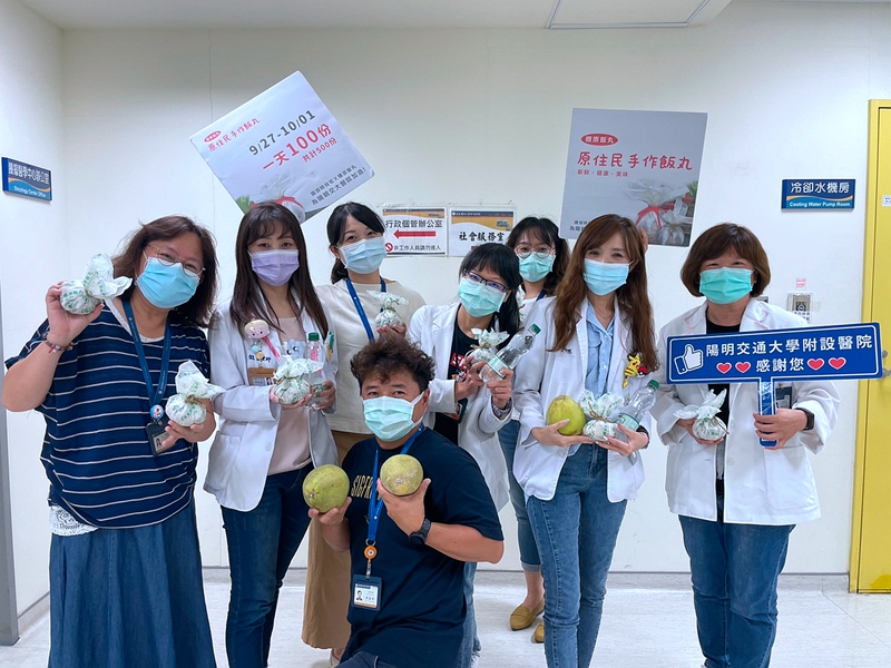 新冠肺炎疫情爆發以來,保護好醫護等工作人員以及就醫民眾健康,是國立陽明交通大學附設醫院最重要的目標,肩負防疫重任,醫護同仁每天身著密不透風極其不便的防疫裝備、頂著炎熱的太陽堅守著防疫最前線,隔離病房內的工作同仁也冒著染疫風險,他們毫不畏懼的守護防疫大門。馥御時尚宅總經理李正賢及孫湯玉惠議員為幫辛苦的醫護人員加油打氣,特別致贈原住民美食~糰原飯丸及飲料慰勞醫護人員,為緊繃的醫院注入暖流。