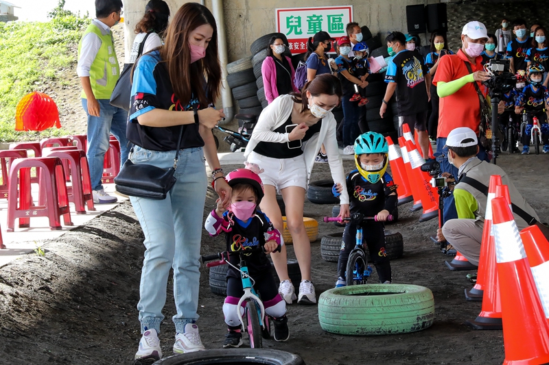 宜蘭市宜興橋下兒童PushBike(滑步車)土坡場啟用,宜蘭市長江聰淵今(16)日辦理兒童PushBike示範及體驗營,體驗營有20位幼童免費參加。
