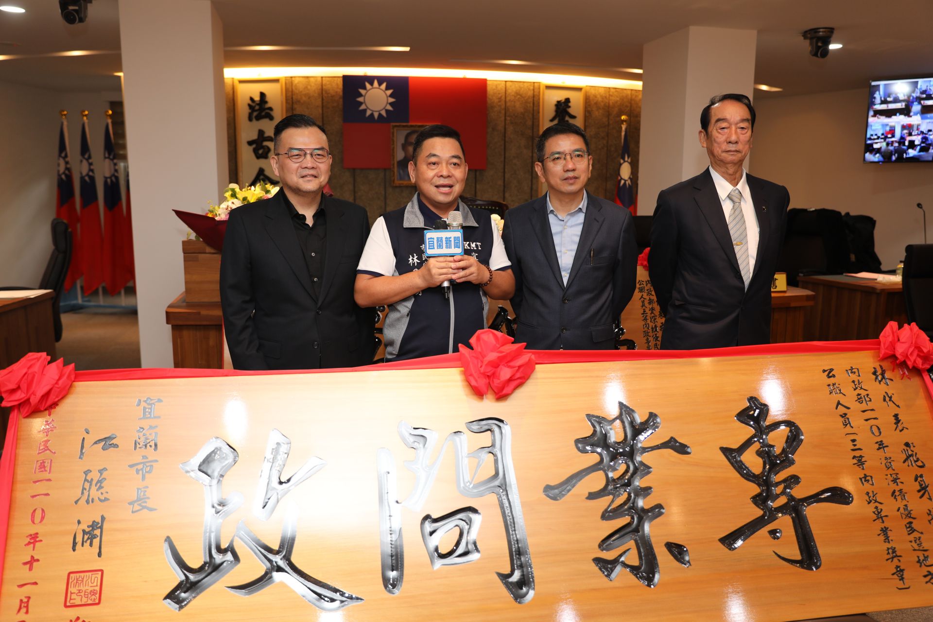 宜蘭市民代表會今(8)日開議,會期至本月19日止,今天的場面非常熱鬧,林飛身代表榮膺內政部110年資深績優民選地方公職人員,市長江聰淵和全體代表都向林飛身代表致贈牌匾誌慶。