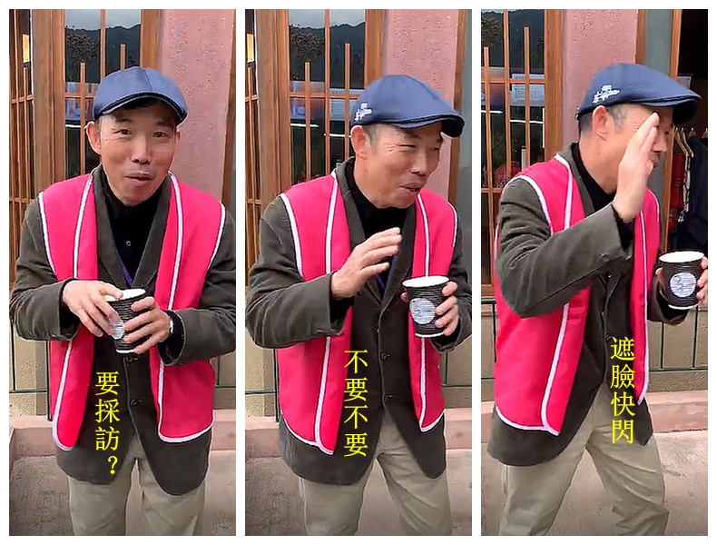 蔡子逸不願接受採訪,正在脫口罩喝飲料時,一聽說要拍張照,立即閃躲,形成有趣畫面。
