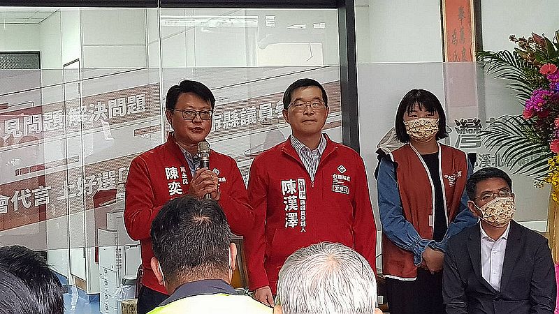 台灣基進黨主席陳奕齊為陳漢澤披上參選人的披肩,現場支持者及選戰團隊,喊出競選主軸。「議會代言、上好選”澤”」,強調在議會成為一個優質的民代,來獲取選民們的認同。