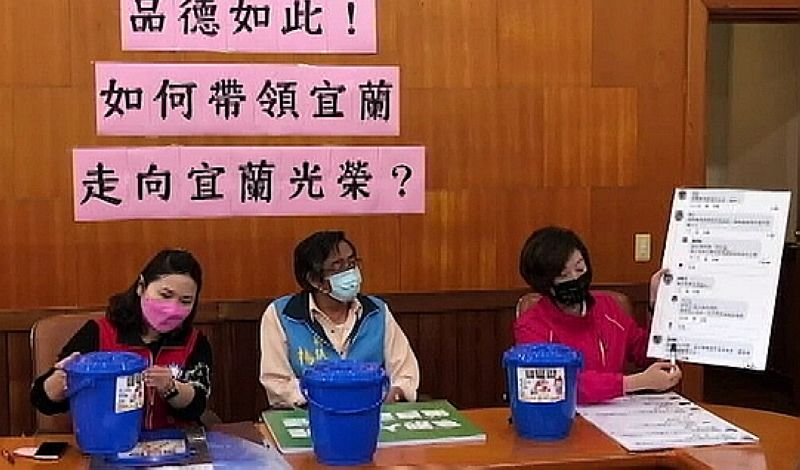 莊淑如議員表示,今年3月31日縣府辦了一項活動,為讓廚餘作更有效的循環再利用,宜蘭縣政府環保局已購置17萬8,000桶家用廚餘桶,4月底前由清潔隊及村里鄰長協助將廚餘桶發送至縣內每一戶縣民家中,縣府發的桶子上沒有貼標籖,但宜蘭市發的江聰淵市長的標籖卻出現在桶子上。