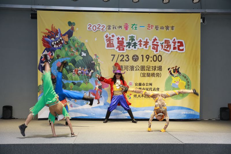 宜蘭市公所訂於111年7月23日晚上7時,在宜蘭河濱公園足球場舉辦~2022當我們「童在一起」藝術饗宴活動,邀請紙風車劇團演出「蕃薯森林奇遇記」,將由虎克船長及小飛俠陪伴宜蘭的大小朋友到蕃薯森林冒險,從敵人手中救出幸福鳥,治療蕃薯國王的疾病,劇情相當精彩,市長江聰淵邀請大家共同陪伴孩子來看場好戲。另外,市公所政風室也將提前在現場與小朋友進行機智廉政趣味問答遊戲,以及反貪腐、反賄選連署活動,期待全民支持政府反貪作為!
