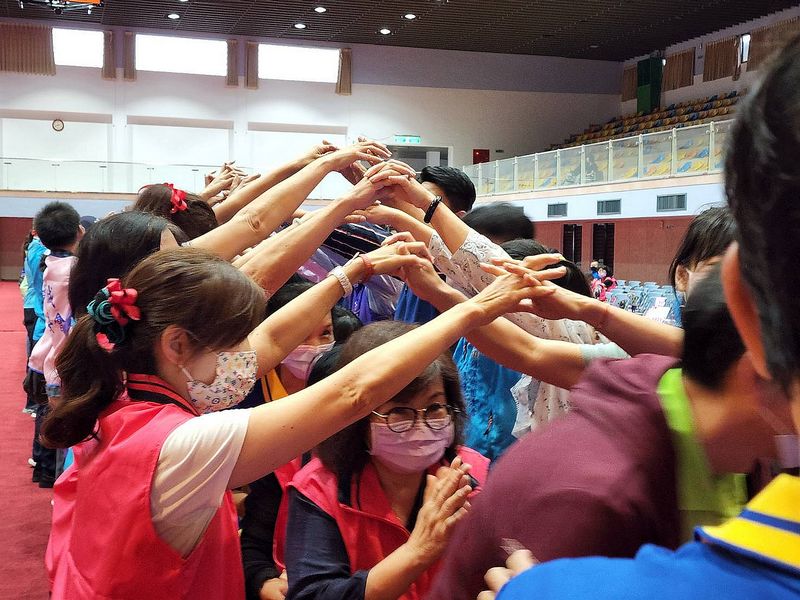 下午14時救國團全縣各鄉鎮市志工團隊,分別以行列式進場,接著各隊展開隊呼,而後是救國團的團體遊戲,隊員們在場子上不斷變換隊形,而後是猜拳遊戲,輸的要幫贏的人抓肩按摩,平手互伸一手幫對方抓肩,大家幾乎又回到年青時代。