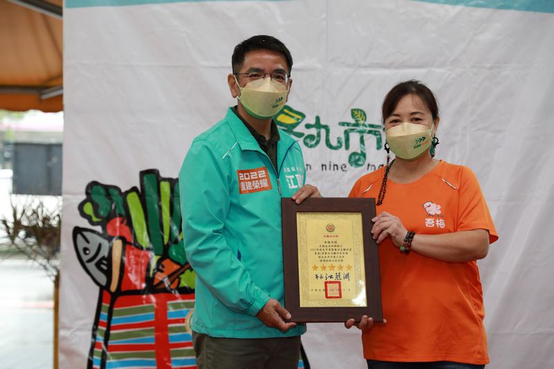 綠九市場甫獲得經濟部評鑑四星優良市集殊榮及諸多攤商業者獲得二至五星樂活名攤評等,宜蘭市長江聰淵除了到場為綠九美食節開幕打氣宣傳,也特別頒贈獎狀,獎勵得獎業者。