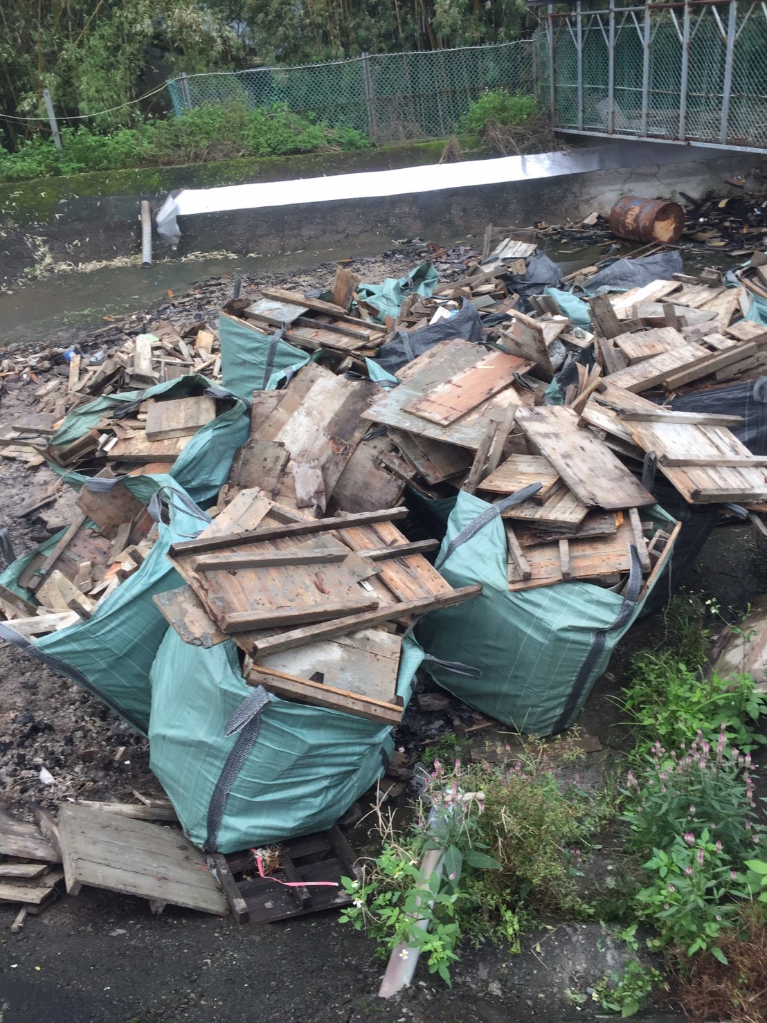 員山鄉湖北段某空地出現大批廢棄棧板。(照片/環保局提供)