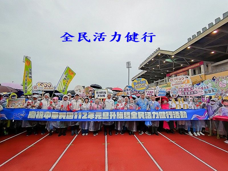 「慶祝中華民國112年元旦升旗典禮暨全民活力健行活動」,宜蘭縣政府今(1)日上午6時40分,在宜蘭運動公園田徑場舉辦,林姿妙縣長與民眾一起迎接元旦來臨,同時一起參與活力操及為健康而走健行活動,建構活力健康的樂活蘭陽。