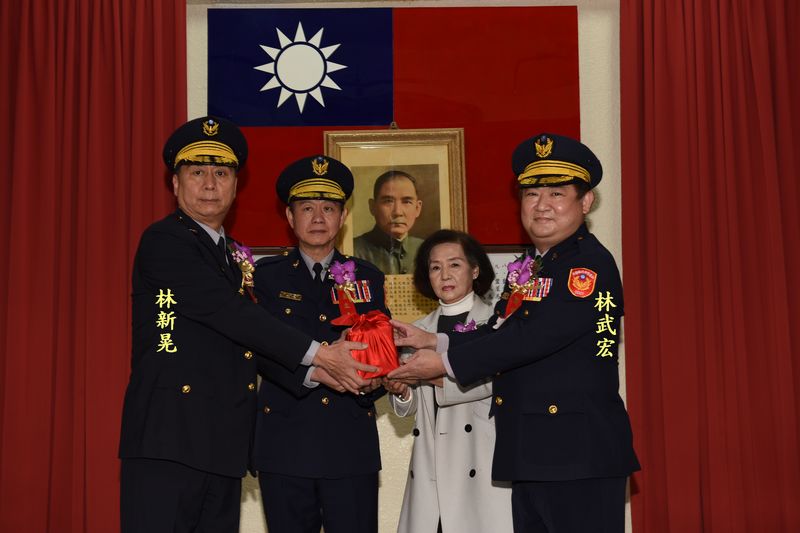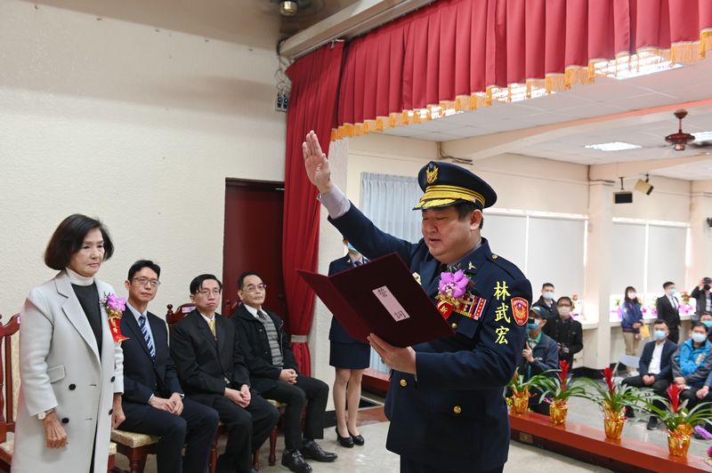 宜蘭縣政府警察局卸任局長林新晃、新任局長林武宏交接典禮,今(16)日上午在警察局舉行,由縣長林姿妙監誓就職,議長張勝德、副議長陳漢鍾、市長陳美玲及法院地檢署調查站三首長均到場觀禮。