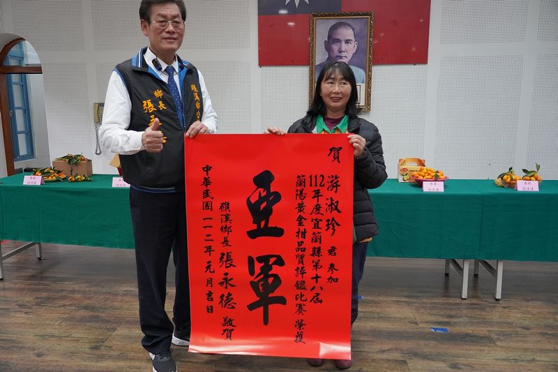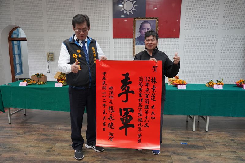 縣農會總幹事陳誌銘表示,今年有45個果園報名參賽,最終評鑑的結果,由礁溪鄉農會王梓瑋從45名參賽者中脫穎而出奪得冠軍,礁溪鄉農會游淑珍獲得亞軍、蘭陽金柑生產合作社林素蓮獲得季軍。另選出優選10名,分別是~礁溪鄉農會游宏俊、員山鄉農會游麗敏、台灣省青果運銷合作社宜蘭分社林明禧、員山鄉農會李讚在、礁溪鄉農會簡清連、蘭陽金柑生產合作社林連明、員山鄉農會羅錫恆、礁溪鄉農會蔡玉美、員山鄉農會游新榮、頭城鎮農會黃正雄。